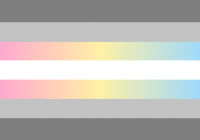 Flagge: gestreift dunkelgrau - hellgrau - Pastell-Regenbogen-Farbverlauf - weiß - Pastell-Regenbogen-Farbverlauf - hellgrau - dunkelgrau